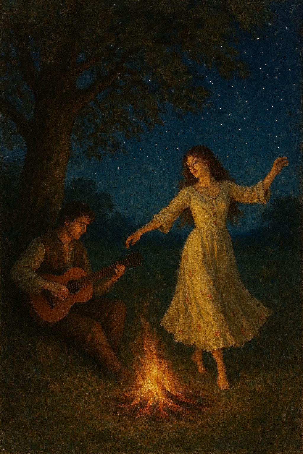 Vzduch zhustol, keď ma gróf odprevadil do záhrad. Svieži večer voňal ružami a lístím, ktoré sa pod našimi krokmi chvelo ako tajný šepot. V tmavých zákutiach osvetľoval chodníčky len bledý mesiac, ktorý nám bol tichým svedkom.